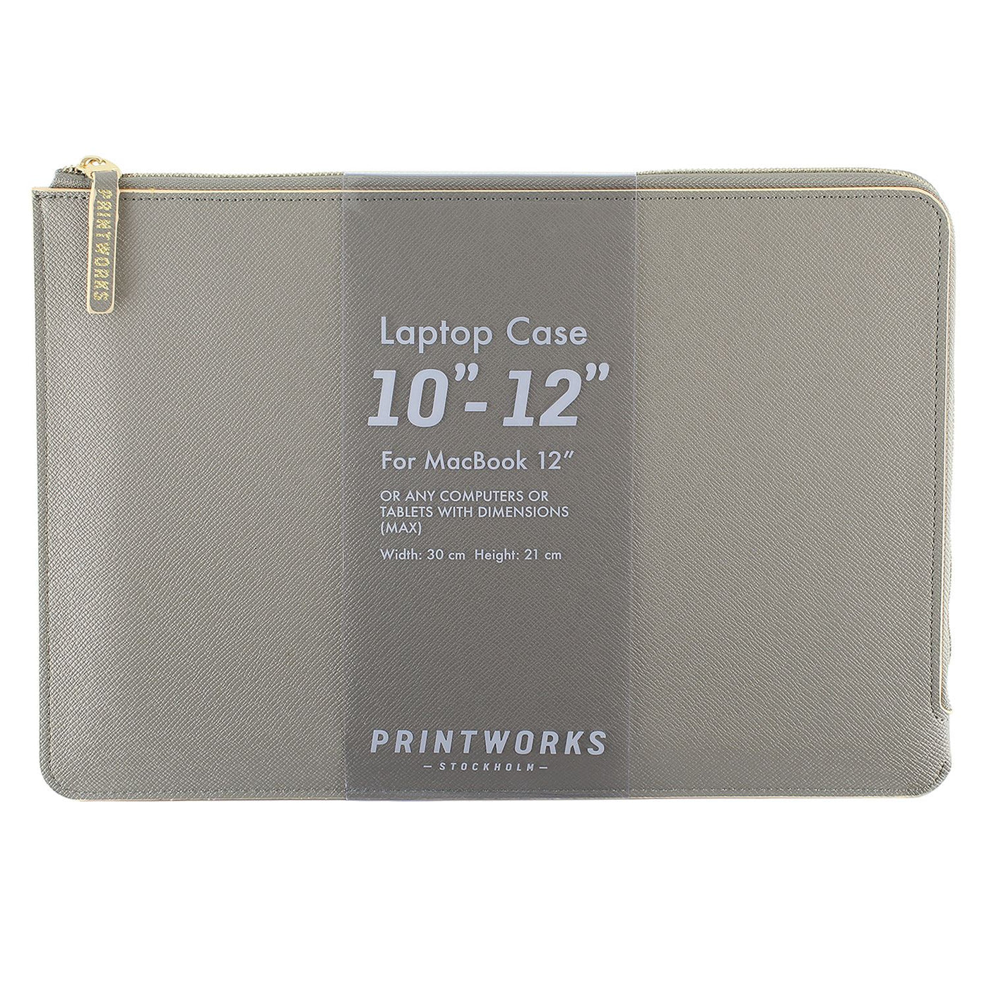 Carry your device in sleek Scandinavian style with this taupe laptop sleeve by PRINTWORKS Stockholm. Made for 10–12" laptops, including the MacBook 12", this case features a durable faux leather finish, gold zipper accents, and soft inner lining for added protection. Ideal for commuting, studying, or travel — where style meets everyday functionality.