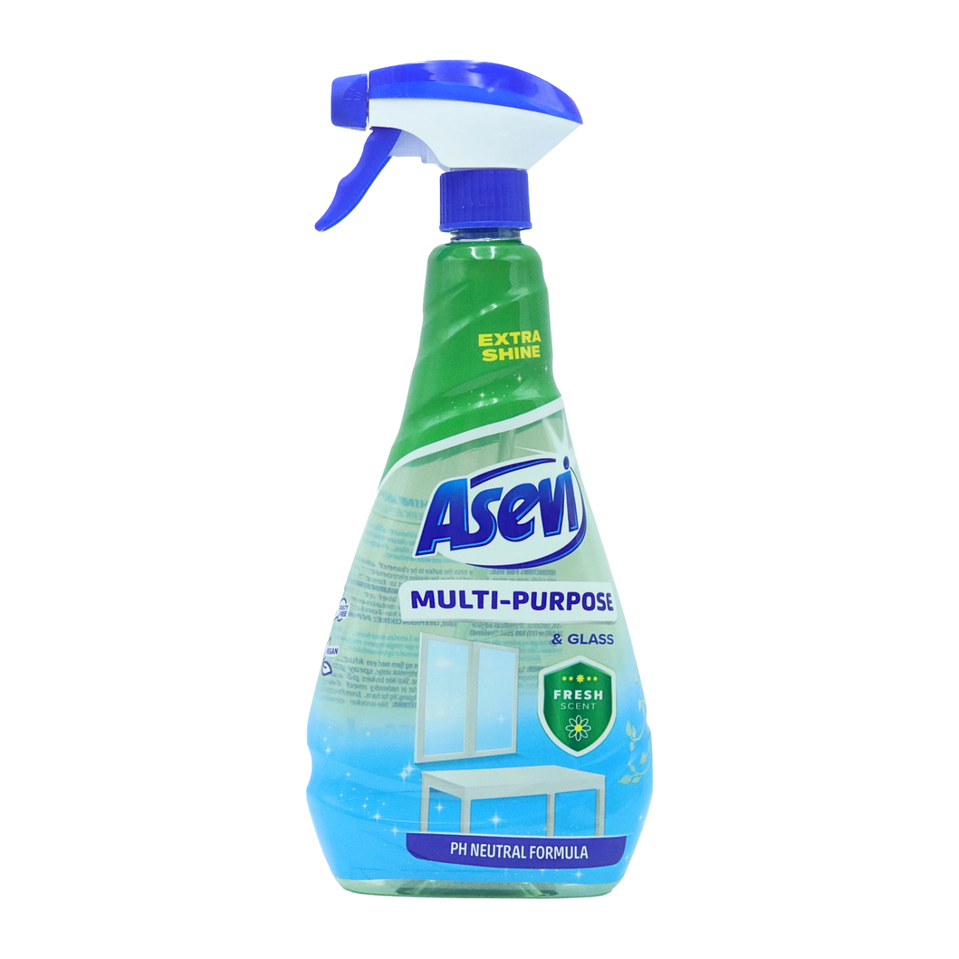 Asevi Multipurpose & Glass Cleaner (750ml) is a powerful all-in-one solution for cleaning glass, mirrors, and multiple surfaces throughout your home or office. Designed for streak-free clarity, it quickly cuts through grease, fingerprints, and everyday dirt—leaving surfaces sparkling clean with a fresh scent.
