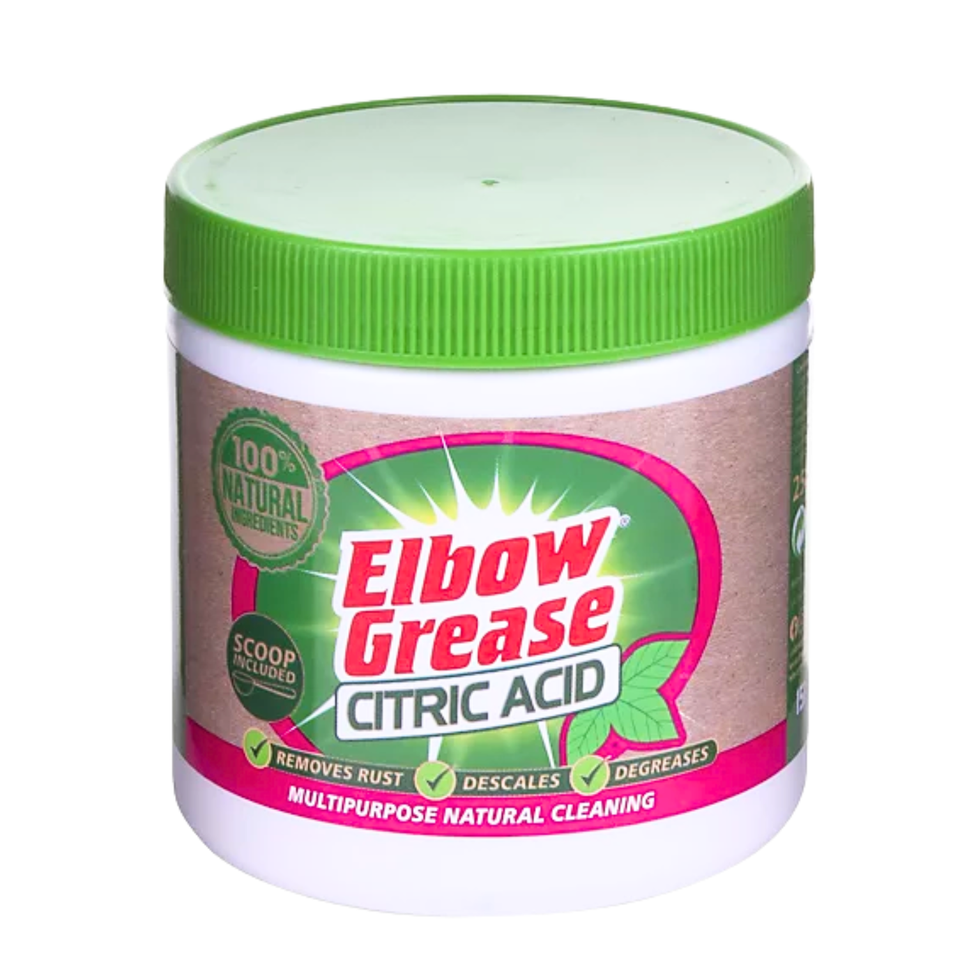 Elbow Grease Citric Acid 250g is a versatile and powerful cleaning agent perfect for descaling and brightening various surfaces. Ideal for removing limescale, grime, and stains, it effectively cleans kettles, coffee makers, and other appliances. Its natural formula is gentle yet effective, ensuring a thorough clean without harsh chemicals. Perfect for maintaining appliances and surfaces, Elbow Grease Citric Acid helps achieve sparkling results and a fresh, clean environment.