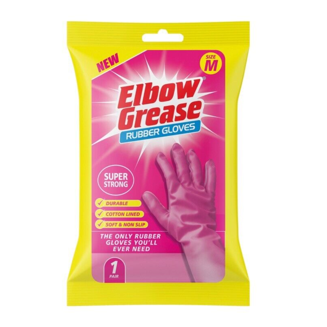 The Elbow Grease Rubber Gloves (Medium, Pink) are designed for maximum durability and protection, making them perfect for cleaning, dishwashing, and household chores. Made from super-strong, high-quality rubber, these gloves provide a secure grip, flexibility, and comfort, ensuring ease of use for all tasks.