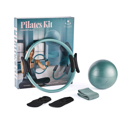 The Myga Pilates Essentials Kit provides all the key tools needed for an effective and focused Pilates routine. This versatile set includes a Pilates Ball to build core strength and enhance posture, a Fabric Resistance Band for full-body toning and mobility, a lightweight Pilates Ring with padded grips for precise exercises, and black Grip Yoga Socks with anti-slip soles to keep you stable on any surface. Perfect for home, studio, or travel use, it promotes proper alignment, balance, and control during low-impact workouts. Suitable for both beginners and experienced practitioners, this kit encourages consistent practice and mindful movement, supporting strength, flexibility, and stability wherever you exercise.
