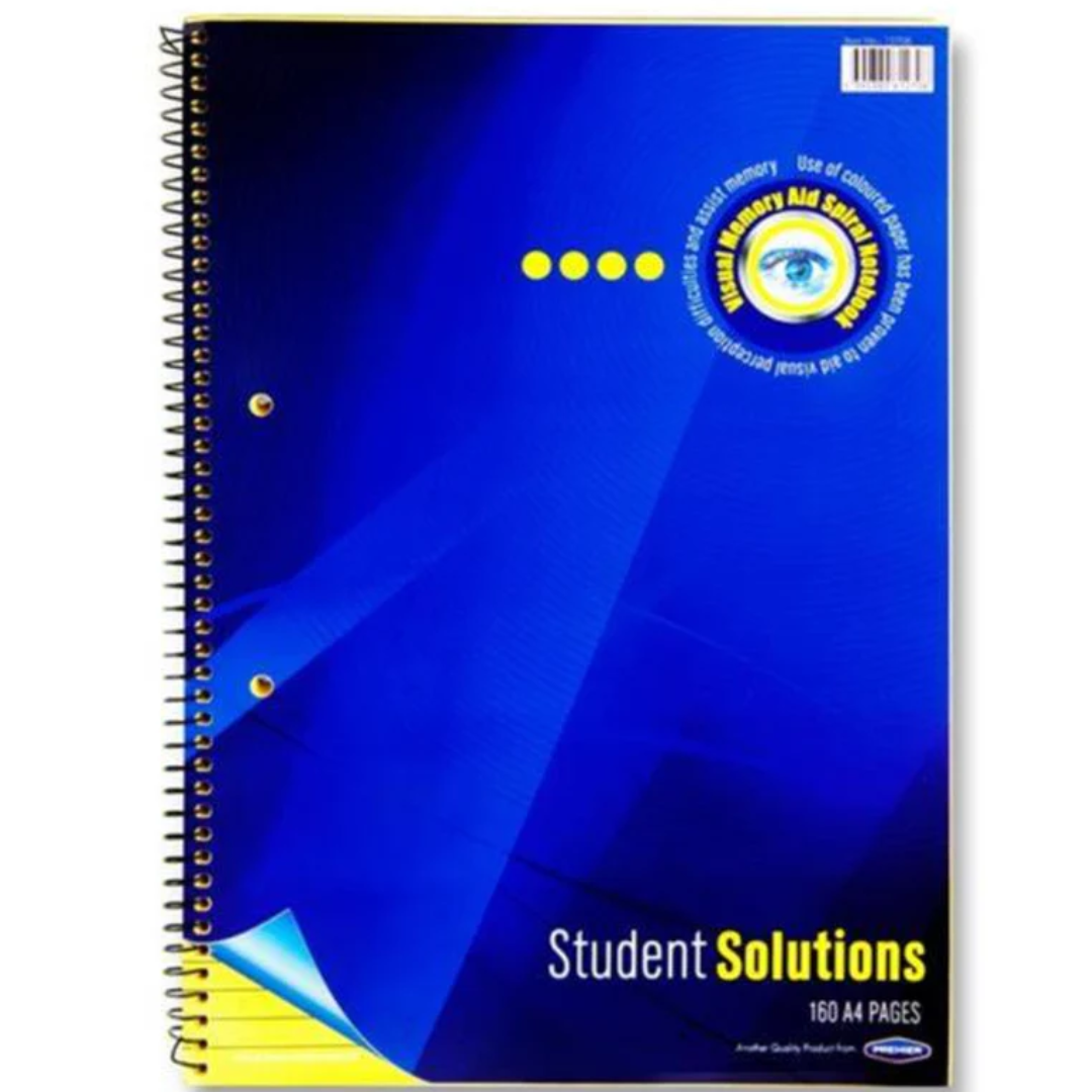 The Student Solutions A4 160-Page Visual Memory Aid Spiral Notebook in Yellow is designed to enhance note-taking and memory retention this notebook is ideal for students and professionals seeking to improve their learning and information retention through the use of colored paper.