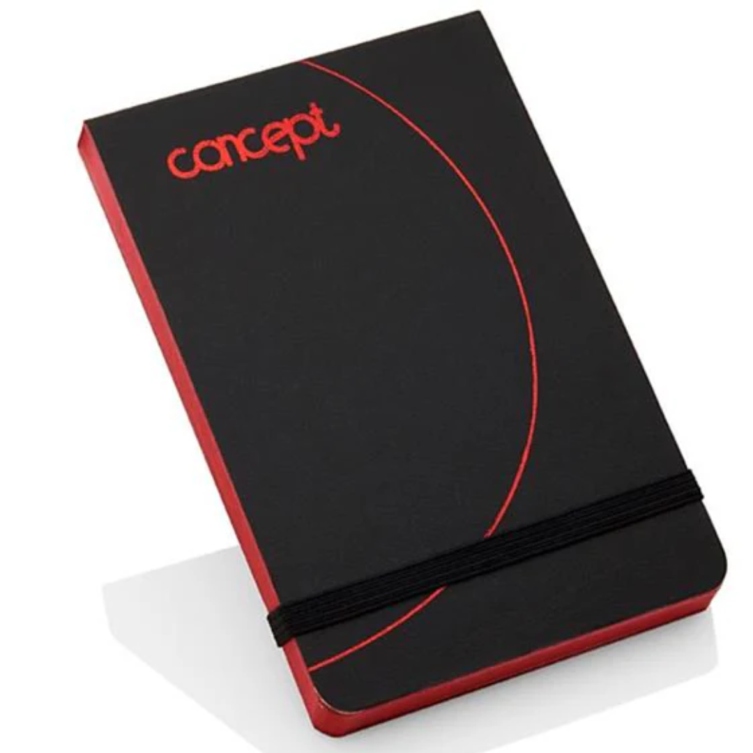 Jot down your notes and ideas in style with the Concept A7 Black Notebook. Featuring 192 pages of quality paper and a secure elastic closure, this compact notebook is perfect for on-the-go writing. Its sleek black design and durable construction make it an essential tool for both personal and professional use.