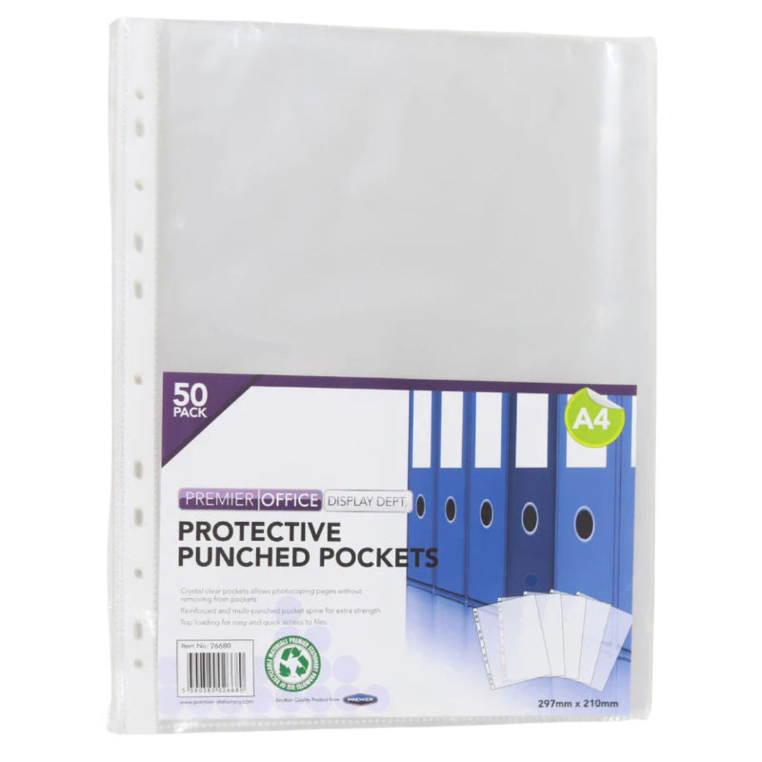 The 50 Pack of Punched Poly Pockets is a versatile and essential organizational tool for any office, classroom, or home setting. These pockets are designed to neatly store and protect documents, papers, or notes, keeping them safe from damage and easily accessible when needed. With pre-punched holes, they can be conveniently inserted into binders or folders for seamless integration into your filing system. Their durable polypropylene construction ensures long-lasting use, while the transparent finish allows for quick identification of contents. Whether you're archiving important documents or organizing study materials, this pack of punched poly pockets provides convenience and efficiency for all your storage needs.