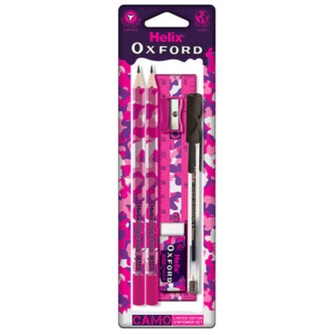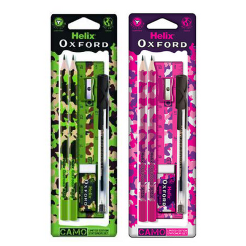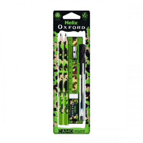 The Helix Oxford Camouflage Stationery Set combines functionality and style, making it a perfect choice for students, professionals, or anyone looking for reliable stationery. Featuring a classic camouflage designs, this set brings both practicality and a touch of rugged style to your desk. Packed with essential stationery items, this set ensures you're equipped for all your writing, organizing, and creative needs.