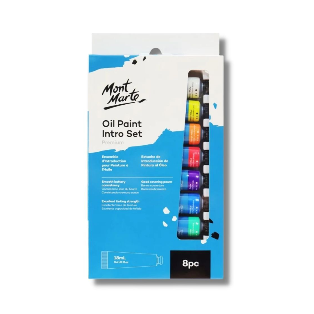 Explore the world of oil painting with the Mont Marte Premium Oil Paint Intro Set (8pc)! This high-quality set includes eight richly pigmented colors, perfect for beginners and experienced artists alike. Each smooth, creamy oil paint is designed for effortless blending, layering, and professional-quality results.