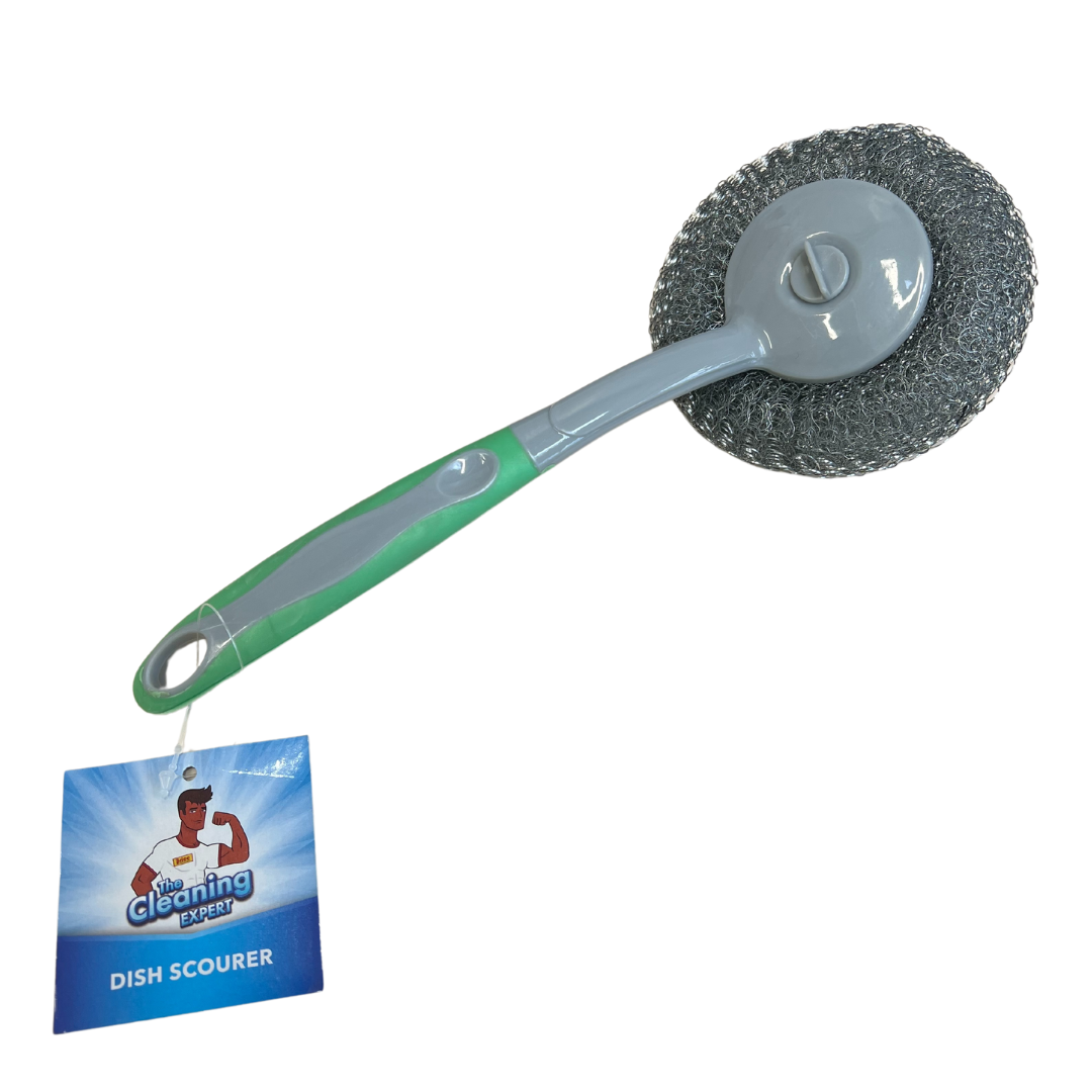 Make tough cleaning jobs effortless with this Mesh Stainless Steel Scouring Pad with Handle, designed for heavy-duty scrubbing and long-lasting performance. The high-quality stainless steel mesh effectively removes stubborn grease, grime, and burnt-on food from cookware, grills, and kitchen surfaces without scratching.