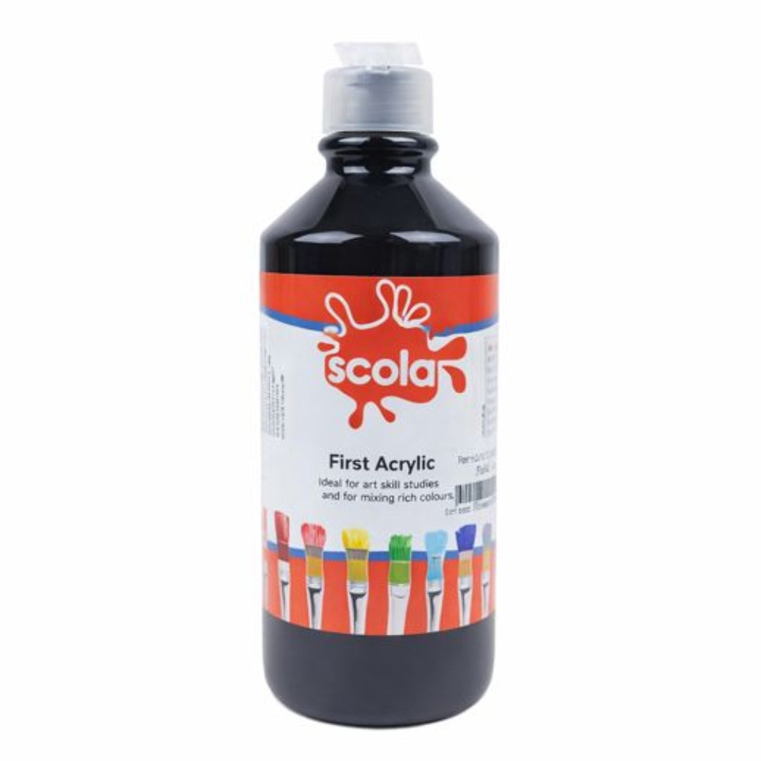 Bold, smooth, and easy to use, Scola 500ml Black Poster Paint delivers rich colour coverage ideal for posters, school projects, and creative activities. Formulated for consistent application, it spreads evenly and dries to a solid finish suitable for paper and card. Ideal for classrooms, art projects, or home use, this paint offers dependable quality and generous volume for everyday creativity.