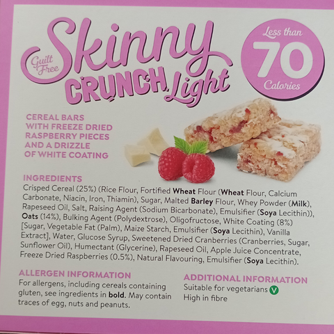 Enjoy the deliciously light and fruity taste of Skinny Crunch Light Raspberry Bars! These low-calorie snack bars are bursting with sweet raspberry flavor, paired with a satisfying crispy texture. Perfect for on-the-go snacking, lunchboxes, or a guilt-free treat, each bar offers a delightful crunch without the extra calories. With a handy 5-pack, you’ll always have a tasty and wholesome snack ready whenever you need it!