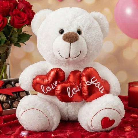 This bear heart decoration is a sweet and charming gift designed to express love and affection on special occasions. White Teddy Bear with Hearts features an adorable bear design in brown and white tones holding a heart detail, making it ideal for Mother's Day, anniversaries, or thoughtful gifting. Soft and visually appealing, it adds a warm and heartfelt touch to gift collections or decorative displays.