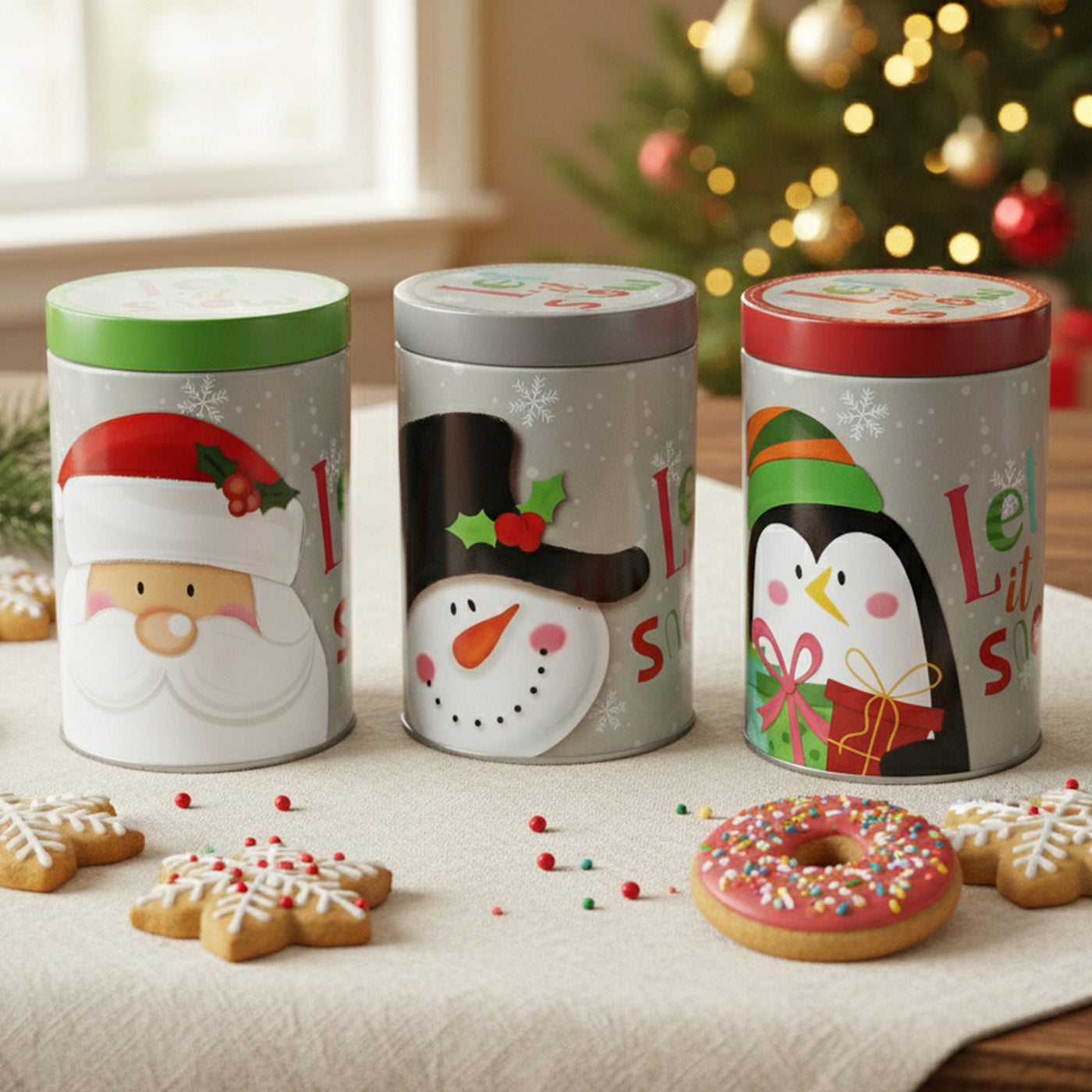 Assorted Cylinder Christmas Cookie Tins – Festive Treat Storage & Gifting