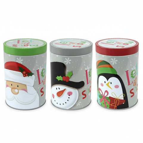Keep your holiday treats fresh and beautifully presented with these Assorted Cylinder Christmas Cookie Tins. Perfect for storing cookies, candies, and festive goodies—or for giving as charming holiday gifts!