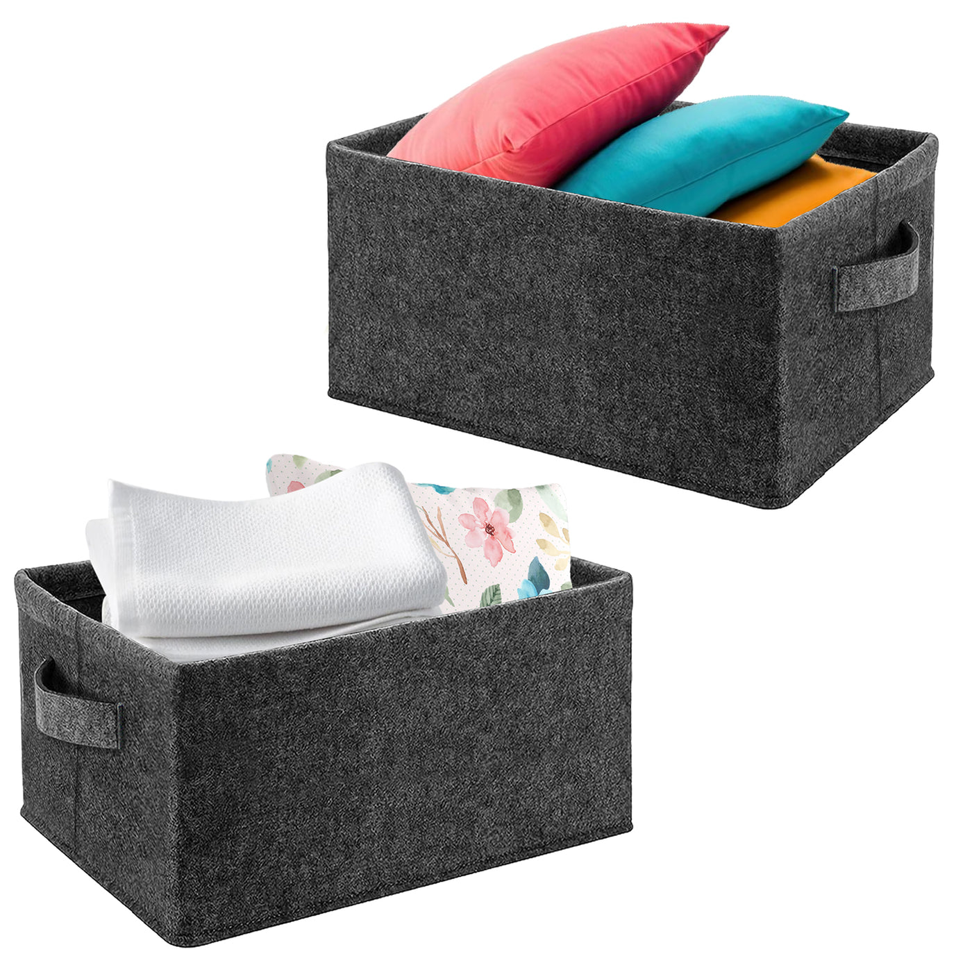 A stylish, minimalist storage solution crafted from durable felt, measuring 40 × 29 × 22 cm—ideal for tidying laundry, toys, blankets, or craft supplies. It stands upright on its own, folds flat for easy storage, and includes reinforced handles for easy carrying. Its neutral tones blend seamlessly with any decor, perfect for nurseries, living rooms, or offices.