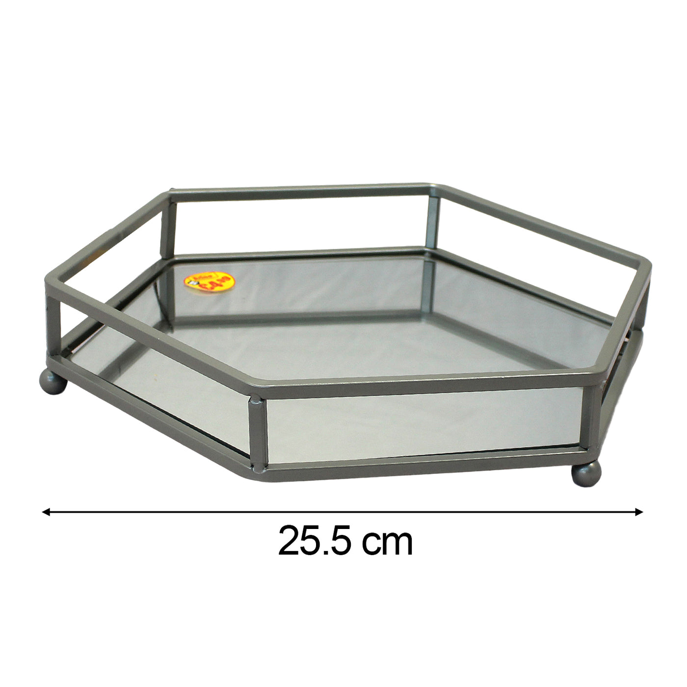 Add a touch of sophistication to your home décor with the Silver Vanity Tray with Mirror. Designed with a sleek silver frame and a reflective mirrored base, this elegant tray is perfect for displaying perfumes, jewellery, candles, or other decorative pieces. Its versatile design makes it suitable for use on dressing tables, bathroom counters, or as a stylish centrepiece in your living space. Durable yet refined, it blends practicality with timeless elegance to enhance any room.