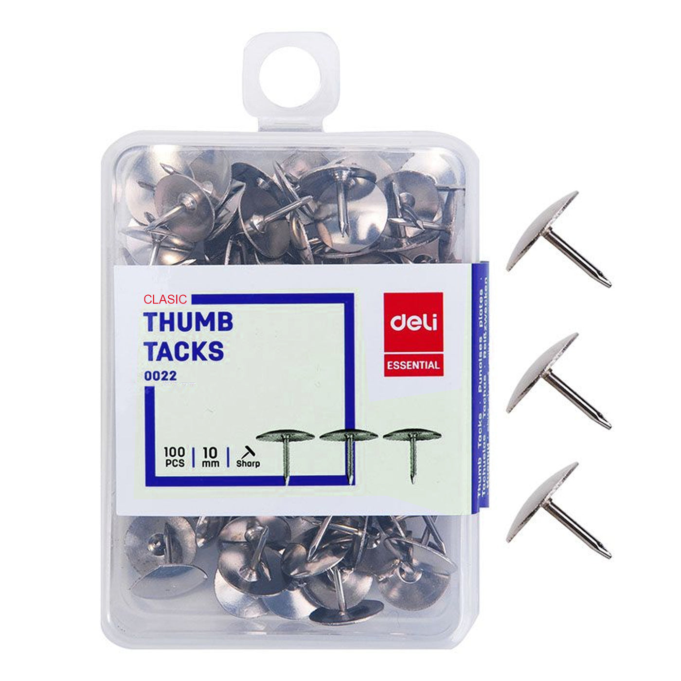 Deli Thumb Tacks – Durable, nickel-plated metal pins designed for securely affixing documents, photos, and notes to various surfaces such as cork boards, bulletin boards, and walls. Each tack features a sharp point for easy insertion and a smooth, rust-resistant finish for long-lasting use. Available in packs of 100, these thumb tacks offer both functionality and a sleek appearance, making them ideal for office, school, or home use.