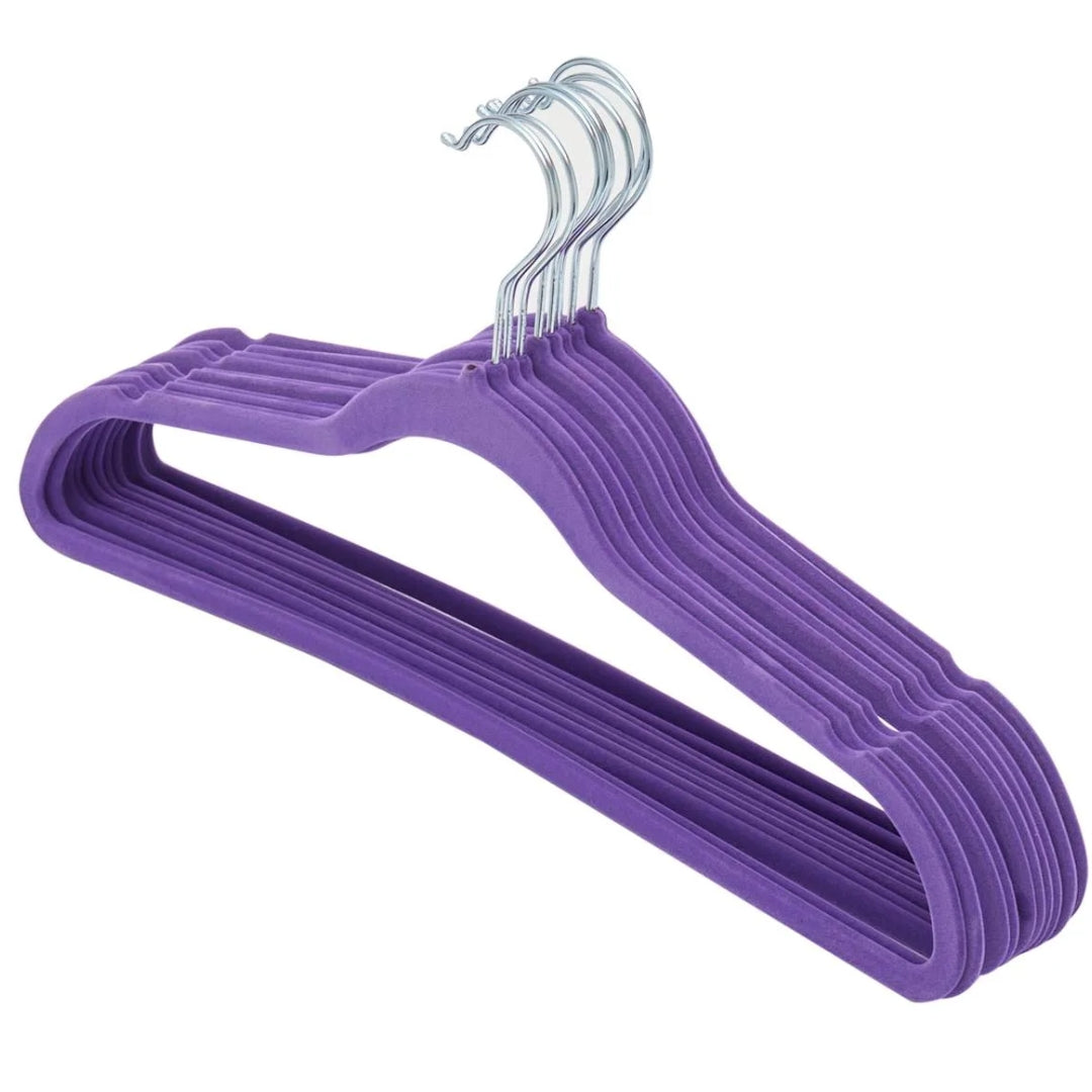 Organize your wardrobe in style with this 10 Pack of Velvet Hangers, designed with a soft, non-slip surface to keep clothes securely in place. Slim and space-saving, these hangers prevent creases and slippage, making them perfect for delicate garments, blouses, suits, and more. With a sleek, modern look and durable build, they add a touch of luxury and practicality to any closet.