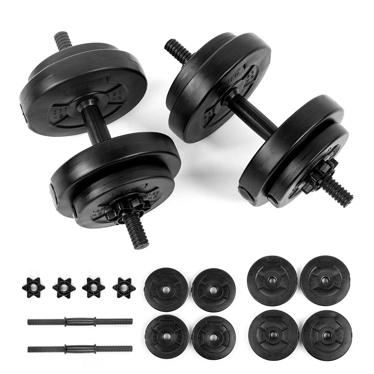 Elevate your workouts with the 15KG Adjustable Dumbbell Set by Phoenix Fitness, the ultimate space-saving solution for strength training at home. Designed with easy-to-use spinlock collars and durable weight plates, it lets you customize your resistance for a variety of exercises—from curls and presses to rows and squats. Compact, versatile, and built to last, this adjustable dumbbell set helps you achieve your fitness goals without the need for a full rack of weights.