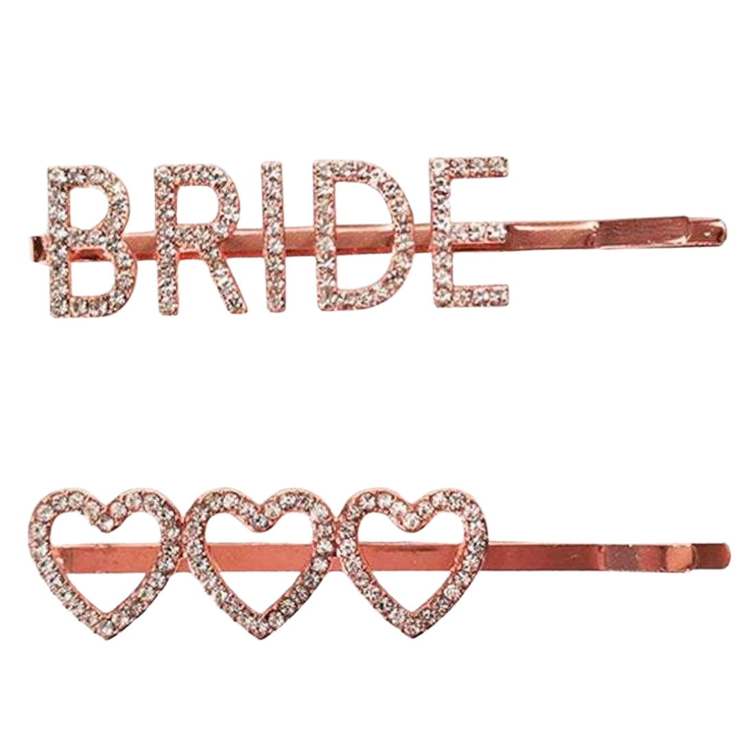 Add sparkle to your special day with this 2-Piece Diamanté 'Bride & Hearts' Hair Set – the perfect finishing touch for bridal hairstyles. Featuring one glittering “Bride” hair clip and a coordinating heart design, this elegant set is crafted with shimmering rhinestones for a glamorous look.