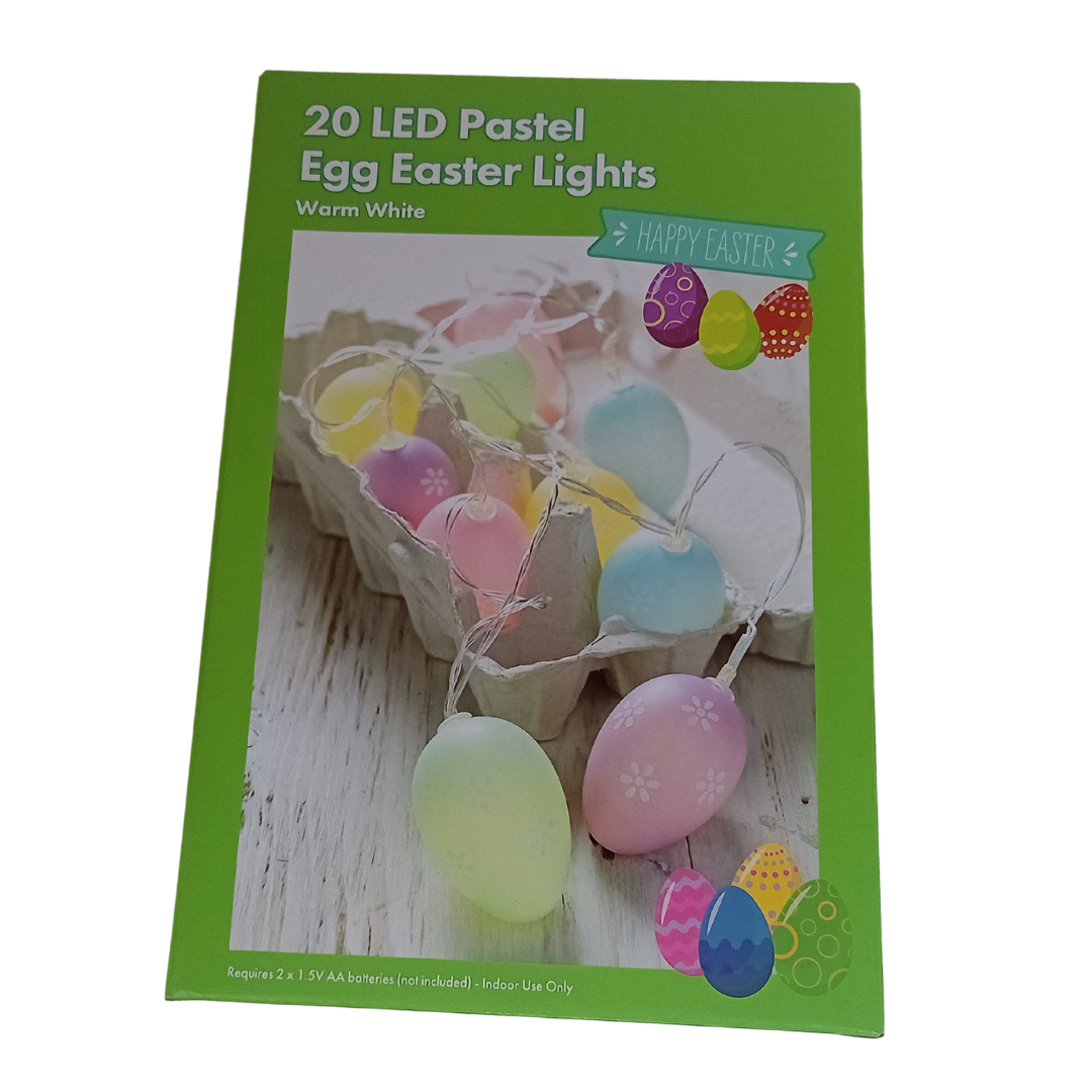 Brighten up your Easter with these 20 LED Pastel Egg Easter Lights. Featuring soft pastel-colored egg-shaped bulbs, these lights create a charming, festive atmosphere. Perfect for decorating tables, windows, or wreaths, they add a cheerful touch to your holiday celebrations!