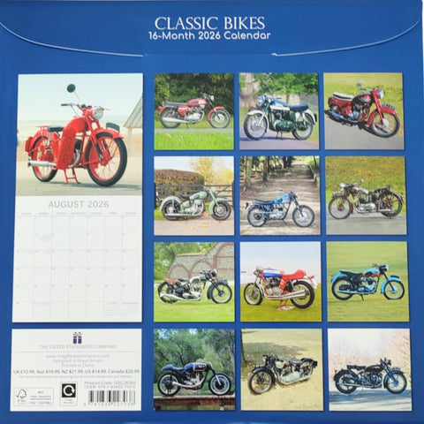 Celebrate the beauty of vintage motorcycles with the 2026 Classic Bikes Calendar. Featuring stunning photography of iconic bikes, this wall calendar is perfect for motorcycle fans, collectors, and classic bike enthusiasts. A great gift idea for riders and vintage motorbike lovers.