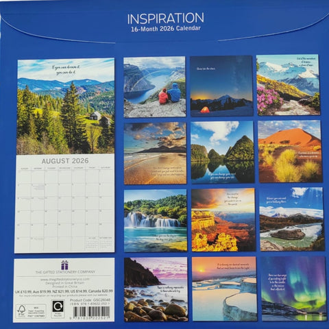 Stay motivated all year with the 2026 Inspiration Calendar. Each month features powerful quotes paired with stunning photography to uplift, encourage, and keep you focused on your goals. Perfect for home, office, or as a thoughtful gift.