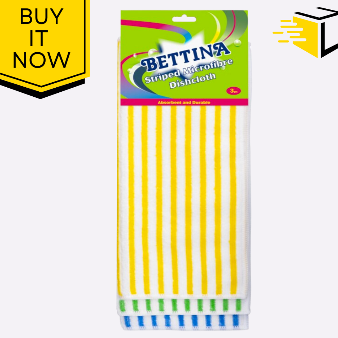 Clean dishes effortlessly with this 3-pack of Striped Microfibre Dishcloths. Designed for superior absorbency and fast drying, these cloths are perfect for tackling spills, wiping surfaces, and scrubbing dishes. Soft, durable, and reusable, they are an essential addition to any kitchen.