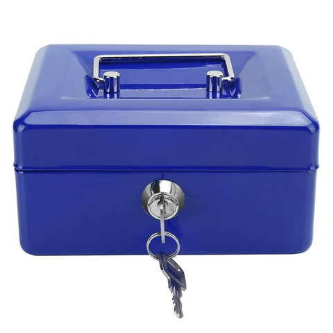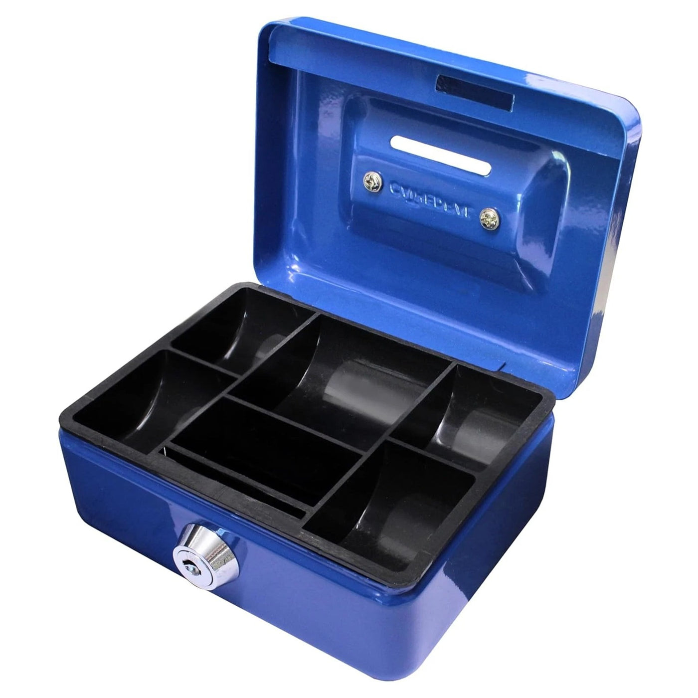 Keep your valuables secure with this Blue 4" Cash Box, a compact and durable money safe perfect for coins, notes, keys, and small valuables. Featuring a secure lock with key access, it’s ideal for home use, school events, market stalls, fundraising, or petty cash management. The sturdy metal construction and removable coin tray make organisation easy, while its portable size fits neatly into drawers or bags.