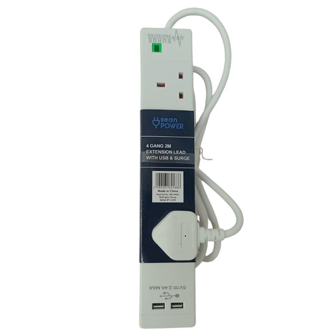 🔌 Key Features• 4 x UK 13A plug sockets• 2 x USB-A ports for direct charging (typically 2.1A–3.1A combined)• 2-meter cable for flexible placement• Durable, compact, and travel-friendly design• Built-in safety protection (model dependent)• Perfect for laptops, phones, tablets, appliances, and more