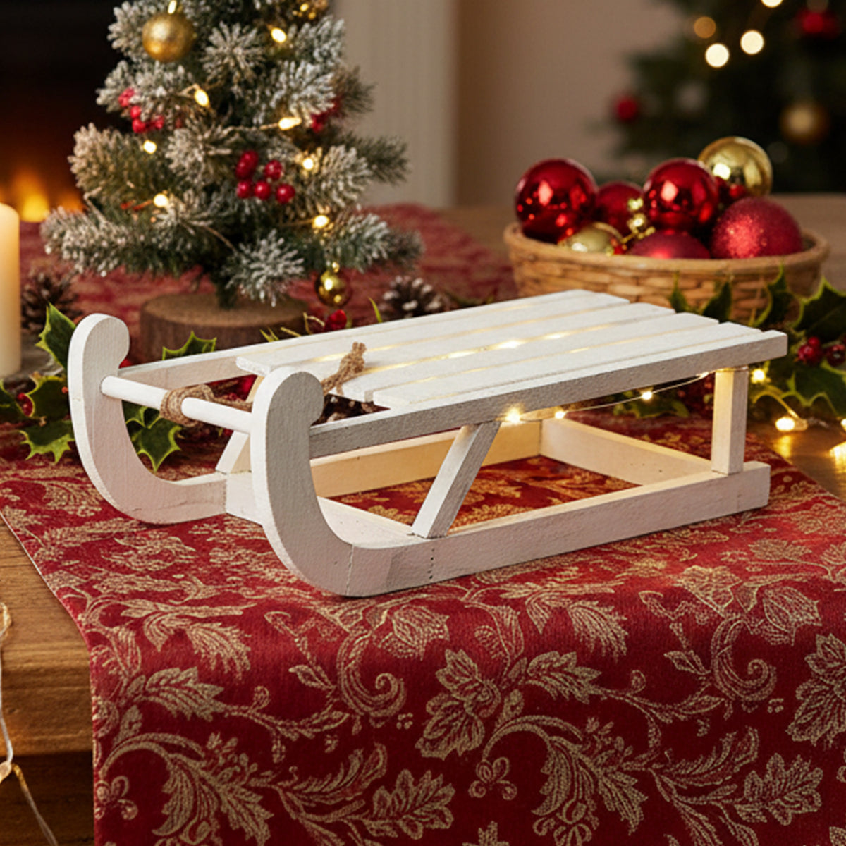 Add glowing charm to your Christmas décor with this beautifully lit white sledge that captures the spirit of the season.