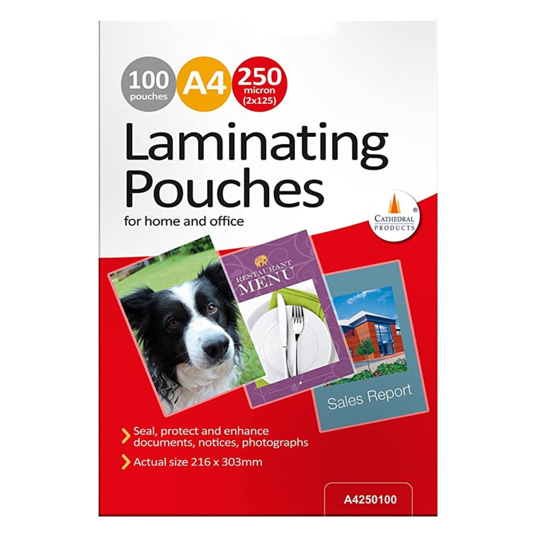 Protect your documents with these A4 laminating pouches. This pack contains 100 pouches, each 250 microns thick, providing durable protection against spills, tears, and everyday wear and tear. Ideal for preserving important documents, photos, or badges, these pouches are compatible with most laminating machines. Keep your papers safe and looking professional with these convenient laminating pouches.