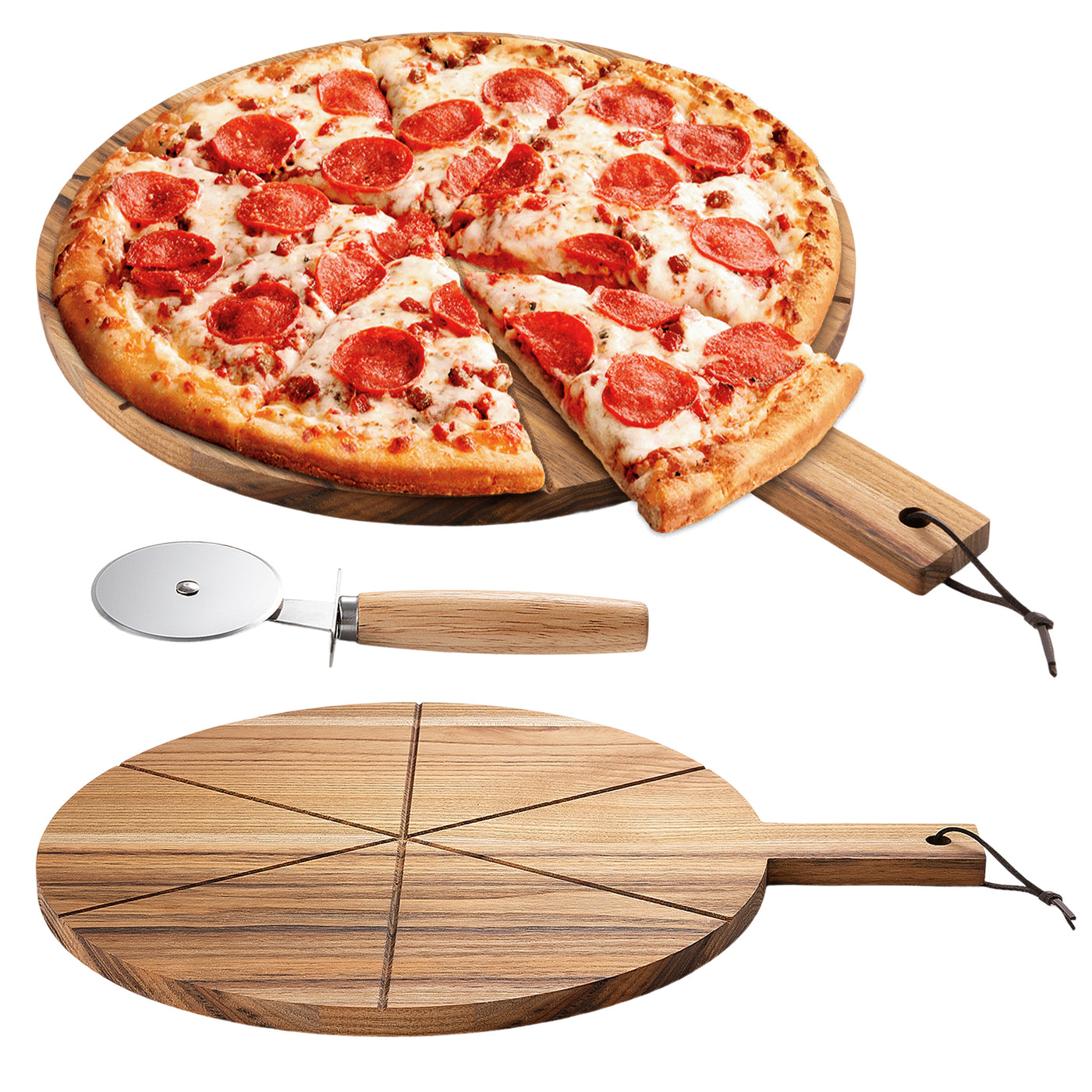 Enhance your dining experience with the Acacia Wood Pizza Board – a beautifully crafted, functional board perfect for slicing and serving your favorite pizzas, flatbreads, and appetizers. Made from high-quality acacia wood, known for its durability and stunning natural grain, this pizza board brings both style and practicality to your kitchen or dining table.