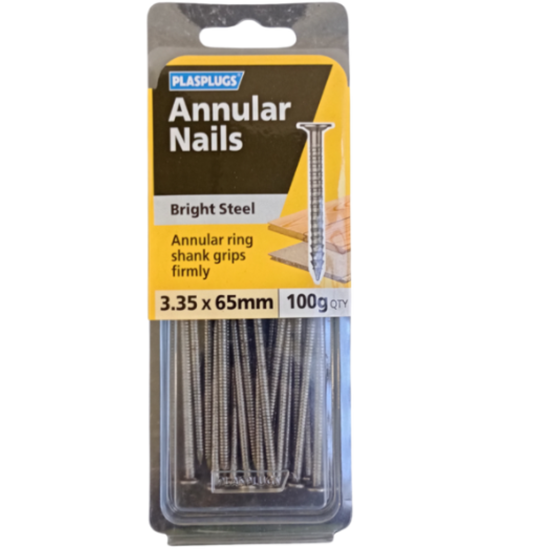 Achieve superior strength and durability with the Annular Nail Ring 65mm – 100g. Designed with a ringed shank for maximum holding power, these nails provide an exceptional grip, reducing the risk of pull-out and ensuring your materials stay firmly in place. Made from high-quality steel, they are perfect for a wide range of applications, from construction to DIY projects.