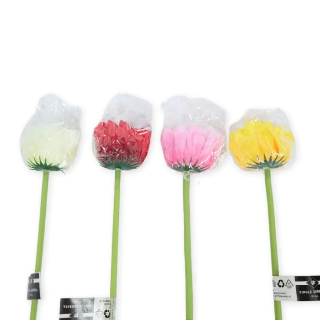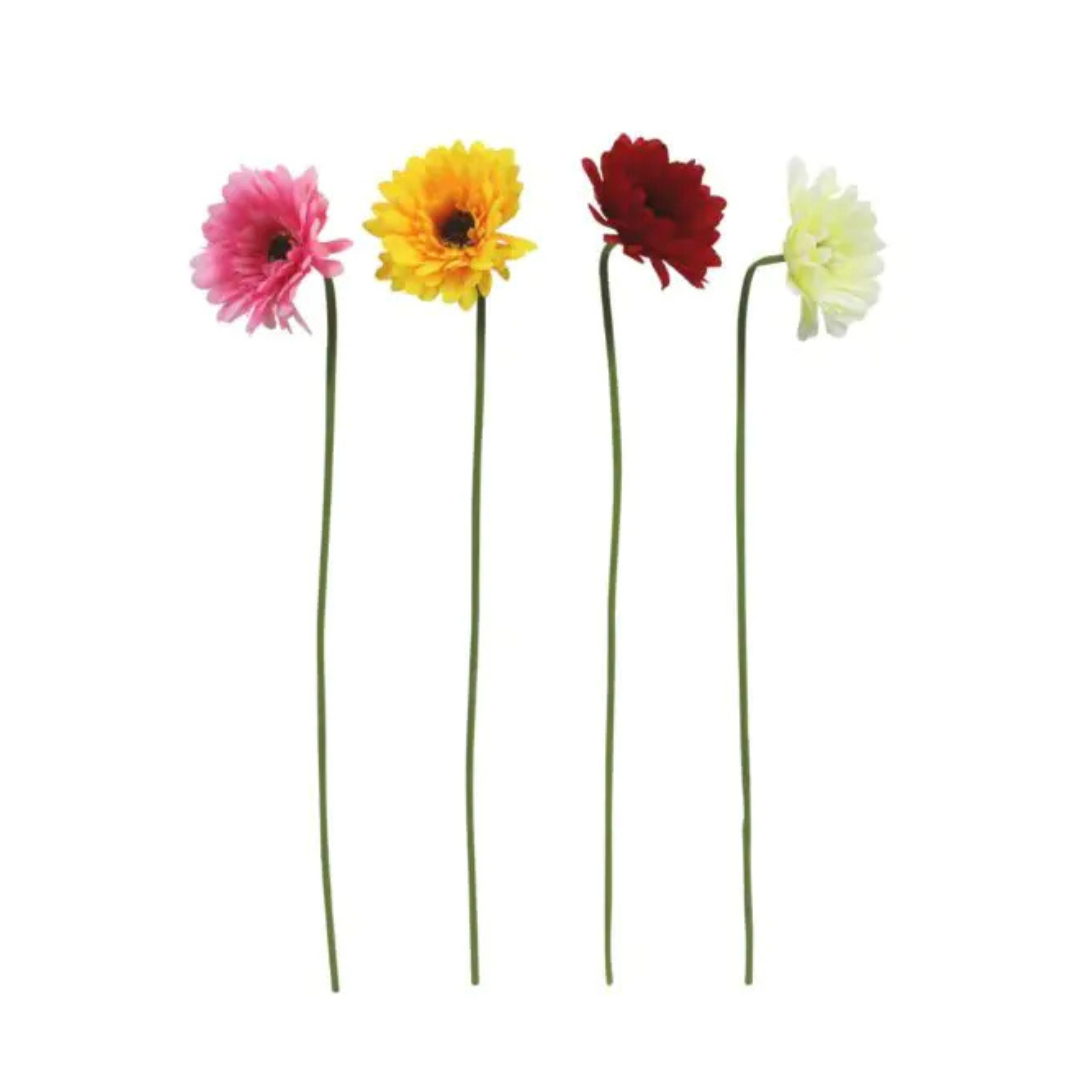 Brighten up any space with the cheerful and vibrant Artificial Gerbera Flower 50cm. This stunning faux flower offers all the beauty of a real Gerbera with none of the maintenance. Standing at 50cm tall, it features realistic, colourful petals and lifelike details that will bring a burst of natural beauty to your home, office, or event. Perfect for bouquets, centrepieces, or as a standalone decorative piece, this artificial Gerbera flower adds a fresh, lively vibe to any space.