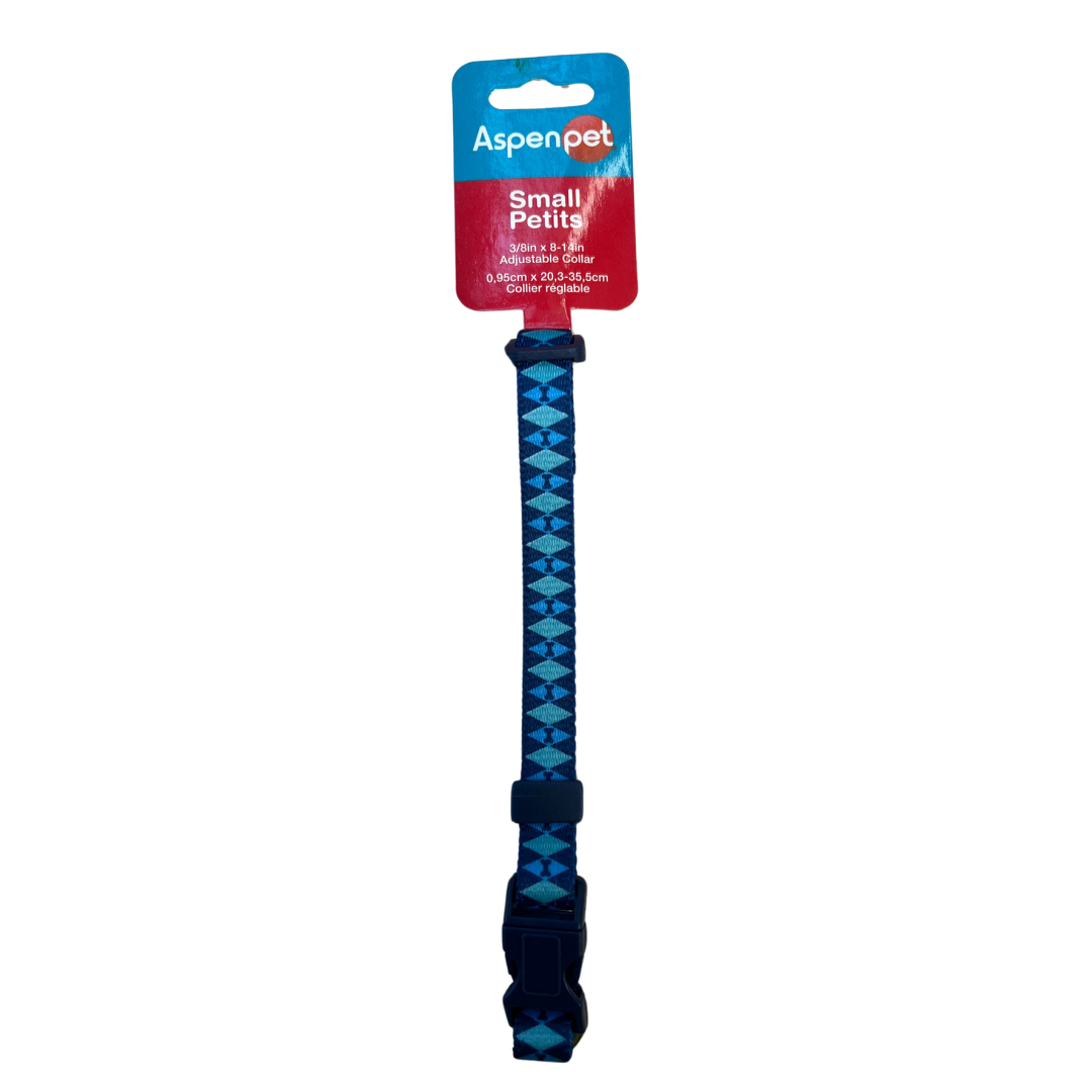 The Aspenpet Small Adjustable Blue Dog Collar offers both comfort and style for your pet. Made with durable and soft materials, this collar is designed to provide a secure fit while being gentle on your dog’s neck. Its adjustable strap ensures a customizable fit for small dogs, growing with your pet as needed. The vibrant blue color adds a touch of flair, making it perfect for daily walks or outings. Whether you're training or simply strolling, this collar keeps your dog comfortable and safe.