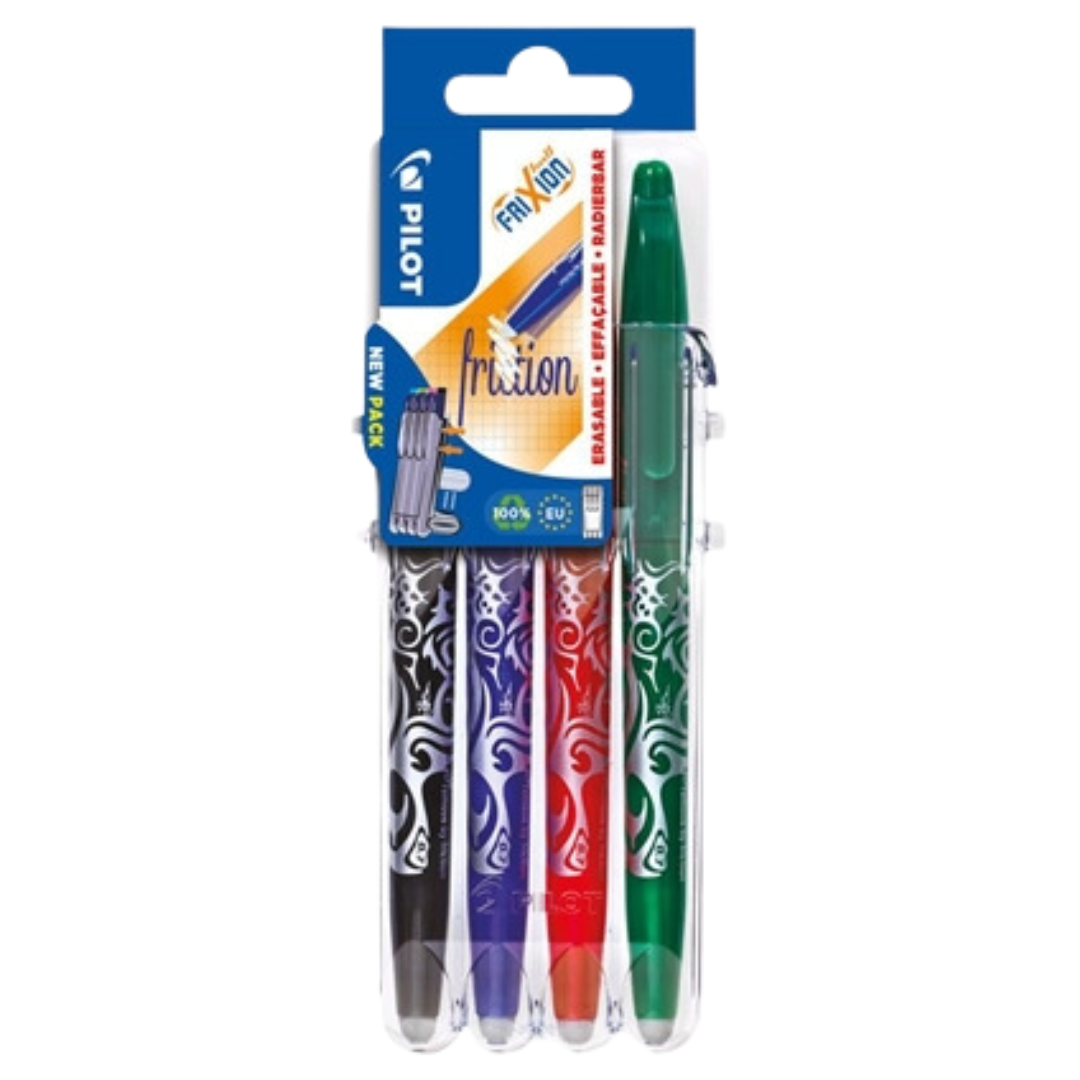 Write, erase, and rewrite with ease using this 4PK of Assorted Frixion Ball Pens. Featuring smooth erasable ink in black, blue, red, and green, these pens are perfect for correcting mistakes without damaging your paper. Ideal for school, office, or home use, they combine convenience with vibrant colors for all your writing needs.