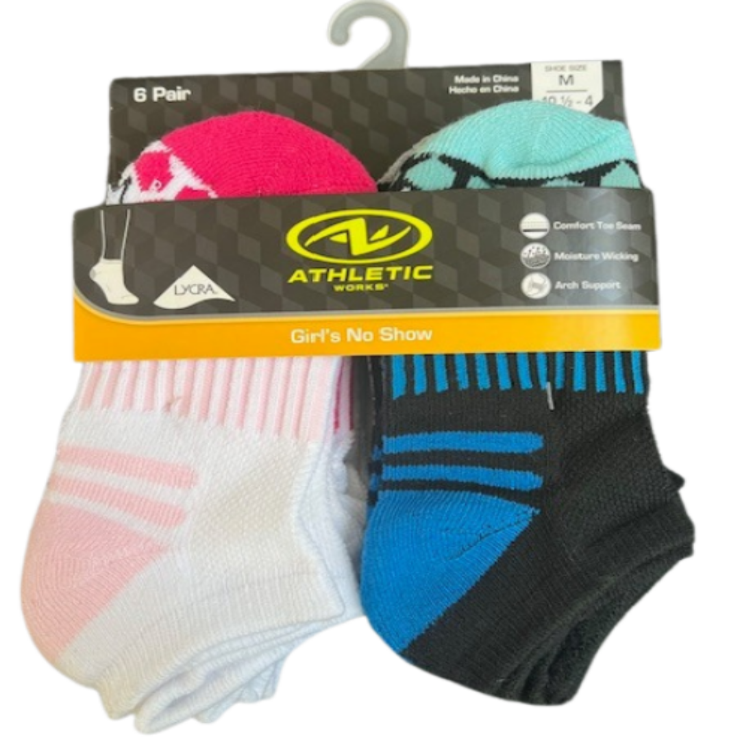Equip your active girl with the Athletic Works Girls 6PK Half Cushion Socks – designed for maximum comfort and performance. Whether she’s playing sports, running, or just spending the day outdoors, these socks provide the perfect balance of cushioning and breathability. The half cushioning offers support where it’s needed most, and the soft fabric keeps feet comfortable and dry. With a versatile design that’s great for sports, school, and casual wear, this 6-pack ensures she always has a fresh pair ready to go.