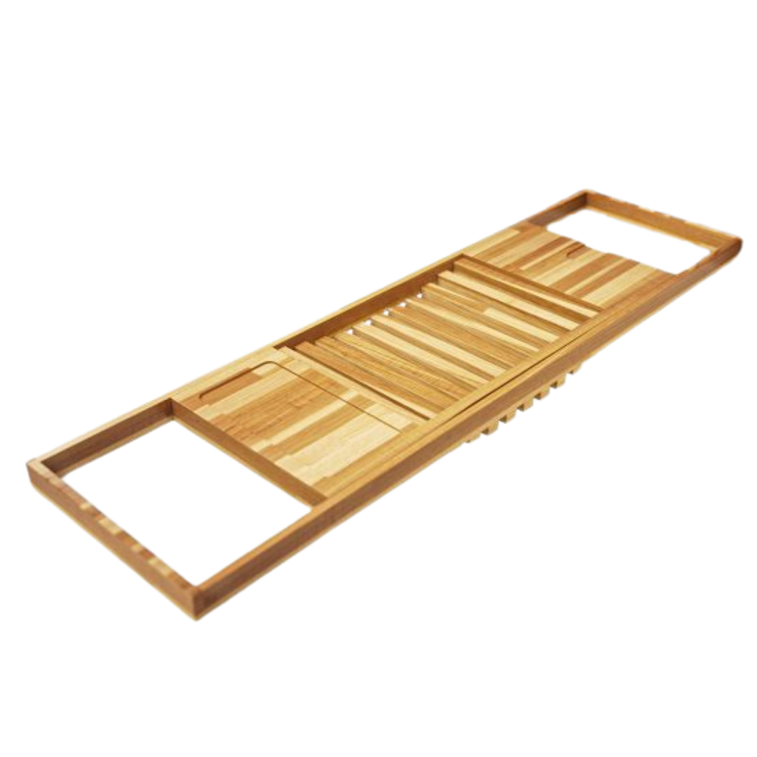 Elevate your bath experience with this eco-friendly bamboo bath rack, featuring an adjustable design to fit most tubs. Equipped with a book stand, wine glass holder, and space for candles or bath essentials, it's perfect for creating a relaxing spa-like atmosphere. Durable, water-resistant, and stylish, this bath rack combines practicality with luxury.