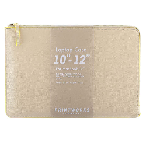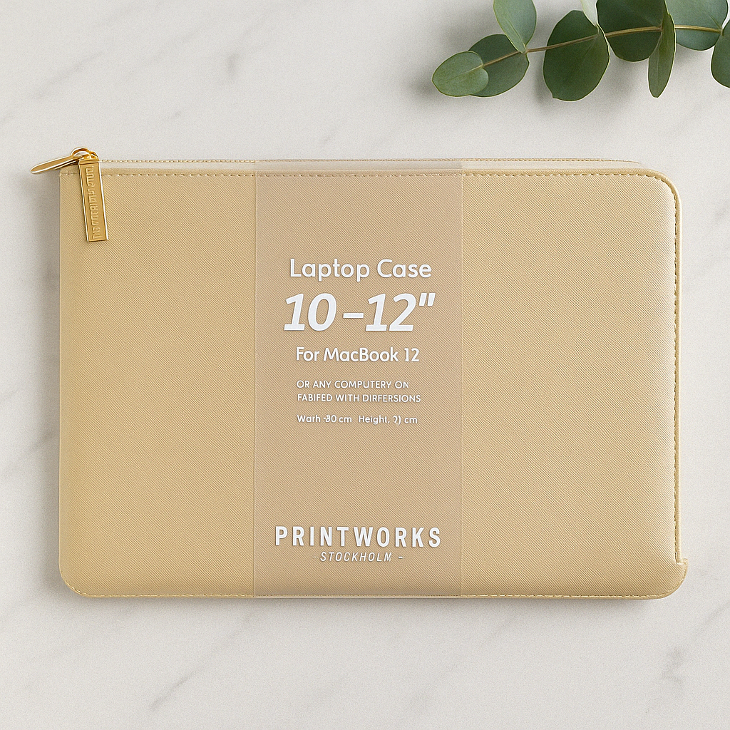 Protect your tech in style with this elegant beige laptop sleeve from PRINTWORKS Stockholm. Designed for 10–12" laptops including the MacBook 12", this case features a sleek faux leather finish, smooth zipper closure, and soft interior lining. Perfect for work, school, or travel — it combines fashion and function for everyday carry.