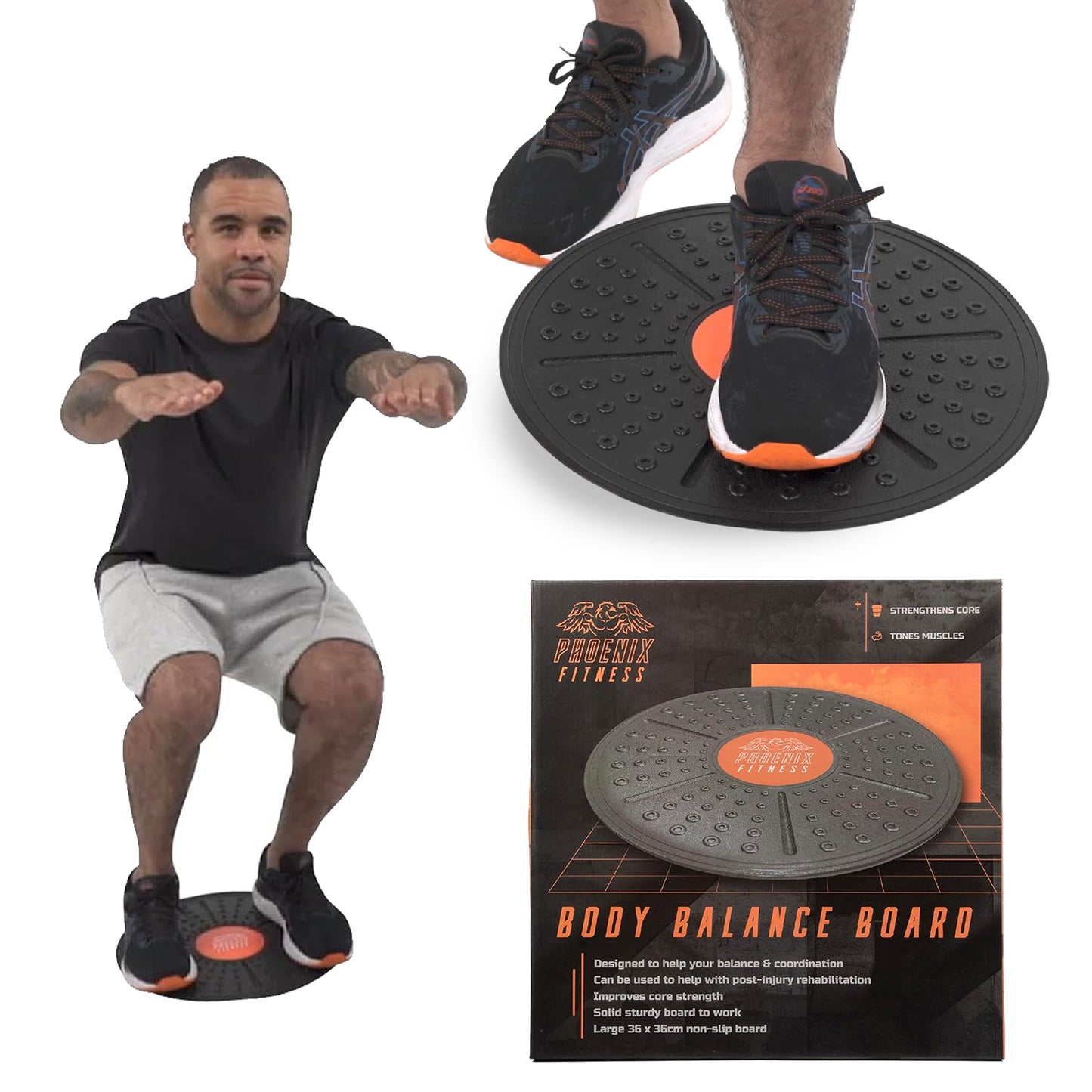 Enhance your recovery and strengthen your core with the Phoenix Fitness Body Balance Board. Perfect for post-injury rehabilitation, this balance board is designed to aid in the recovery from ankle and knee injuries, including sprains, twists, and surgery. Its centrally weighted design improves core strength and tones leg muscles and buttocks, making it an essential tool for overall fitness.
