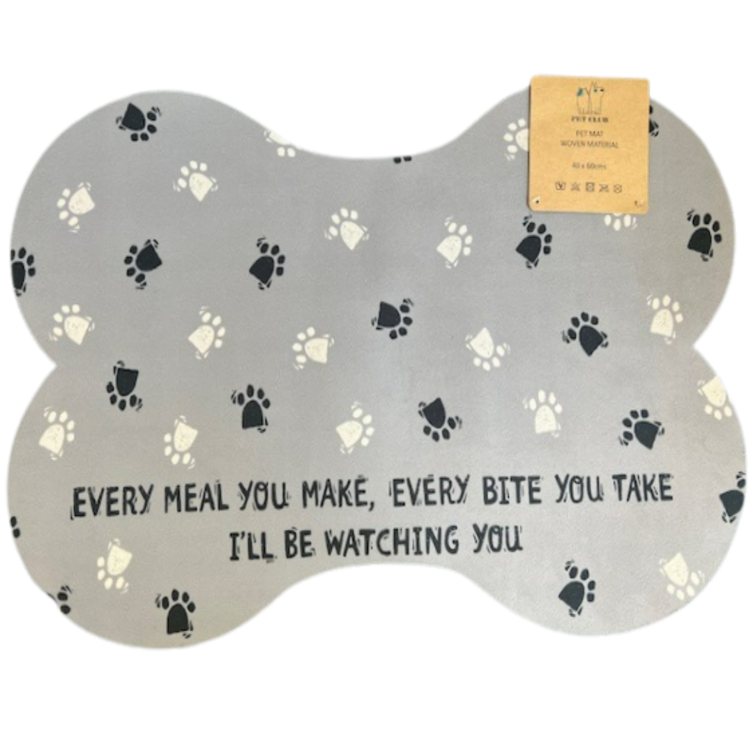 Keep your furry friend comfortable and stylish with the Bone-Shaped Pet Mat 40x60cm. Designed to provide a cozy and practical space for your pet to rest, this mat is perfect for placing under food and water bowls or simply as a lounging spot. Its fun bone-shaped design adds a playful touch to your pet’s space, while its durable and easy-to-clean materials make it a must-have accessory for any pet owner.