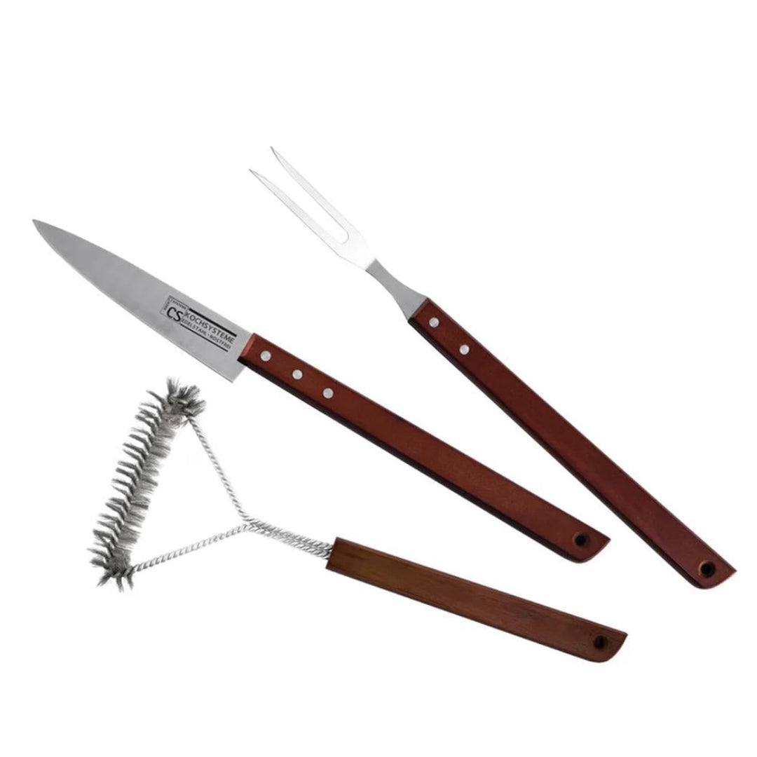 Elevate your grilling game with the Brühl Jumbo BBQ Set Knife 3pcs. Crafted for precision and durability, this set includes three essential knives designed for outdoor cooking and BBQ enthusiasts. Whether you're slicing through juicy steaks, fish fillets, or chopping vegetables, these knives offer excellent cutting performance. The large, ergonomic handles provide a comfortable grip, while the sharp, stainless steel blades ensure smooth, clean cuts every time. Perfect for BBQs, picnics, and outdoor gatherings, this set is a must-have for every grill master.