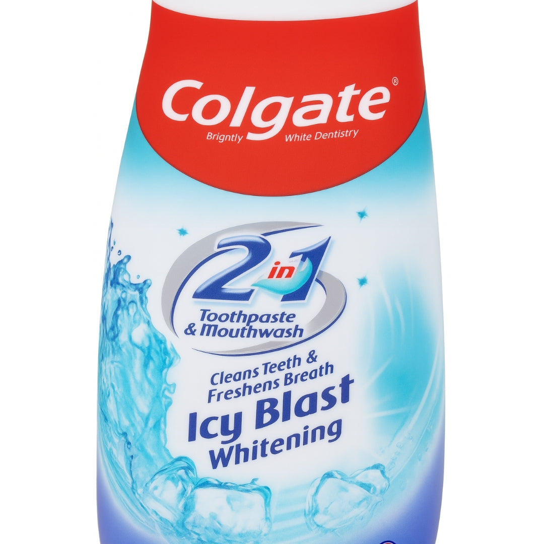 Experience Colgate 2in1 Icy Blast Toothpaste 100ML – a powerful fusion of toothpaste and mouthwash that delivers intense freshness, deep cleaning, and a long-lasting icy mint blast.