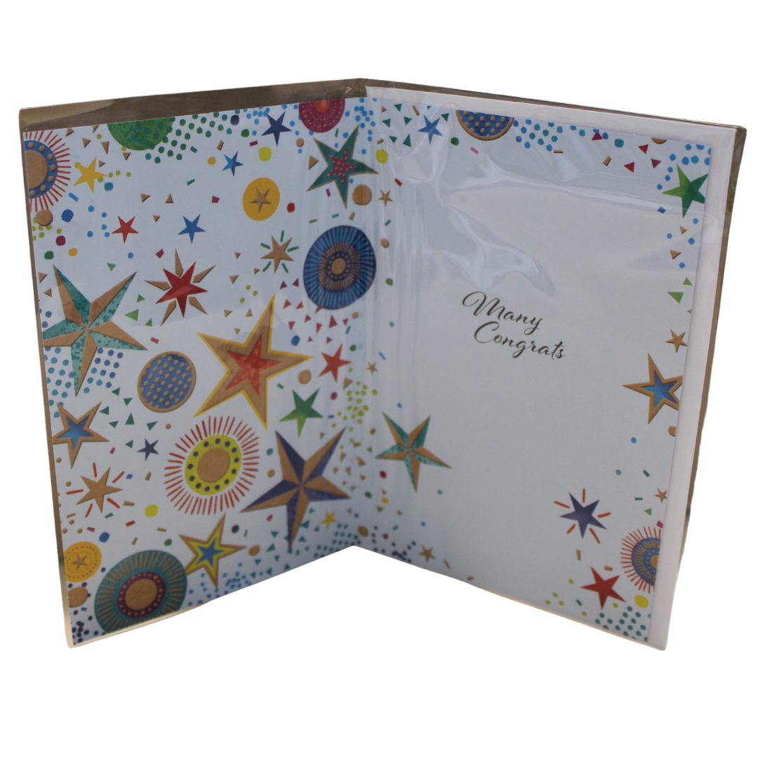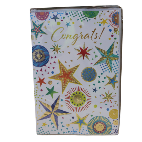 Celebrate achievements big and small with our vibrant 'Congrats!' card. Featuring bold lettering and a cheerful design, it’s perfect for graduations, promotions, new jobs, or any special milestone. Half blank inside for your personalized message.