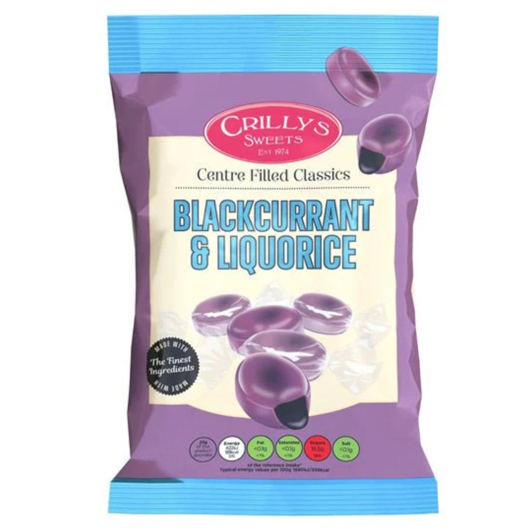 Crillys Blackcurrant Liquorice 130g offers a delicious blend of bold blackcurrant flavour and smooth, chewy liquorice. Perfect for classic sweet lovers, these traditional treats are great for sharing or enjoying on your own.