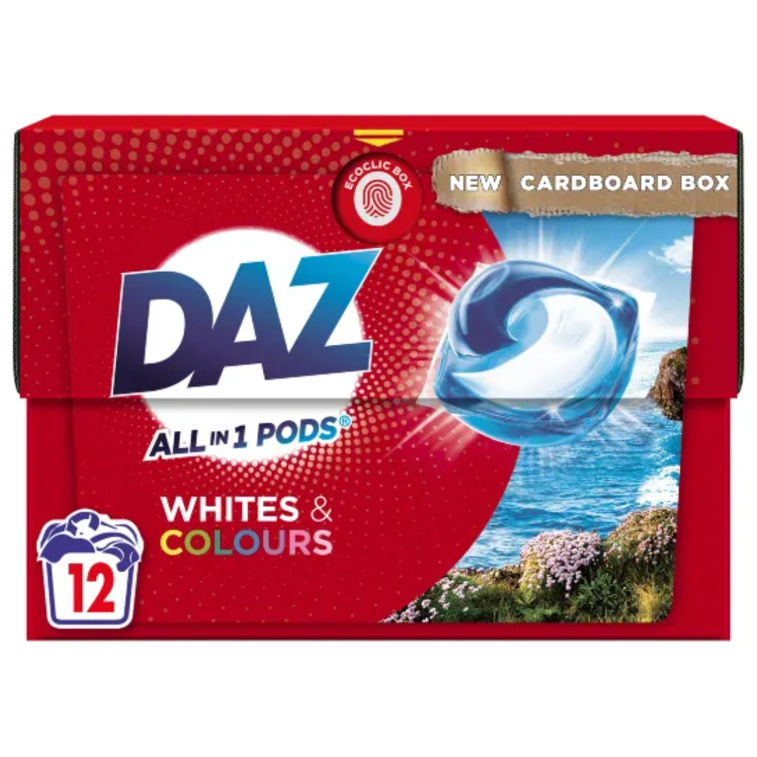 Get brilliantly clean clothes with Daz 12W Laundry Liquid Pods. Designed for 12 powerful washes, these convenient pods remove tough stains while leaving your laundry smelling fresh. Perfect for all fabrics!