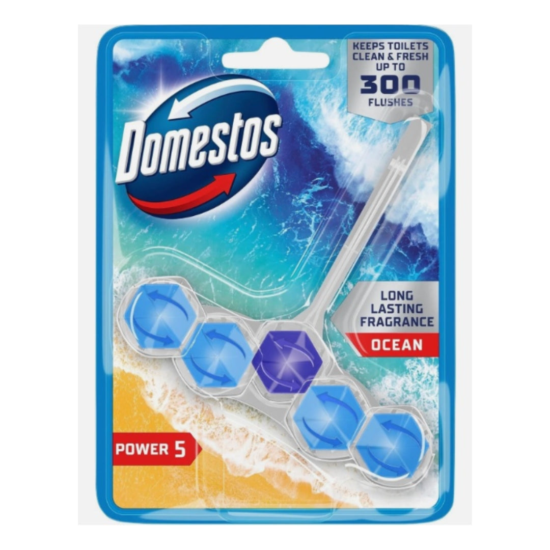 Refresh your toilet with Domestos Ocean Blocks (50g), delivering powerful cleaning and a crisp ocean fragrance with every flush. This toilet rim block helps prevent limescale, remove stains, and fight germs while keeping your toilet bowl clean and hygienic. Easy to use and long-lasting, it’s ideal for maintaining freshness between deep cleans—perfect for everyday bathroom care.