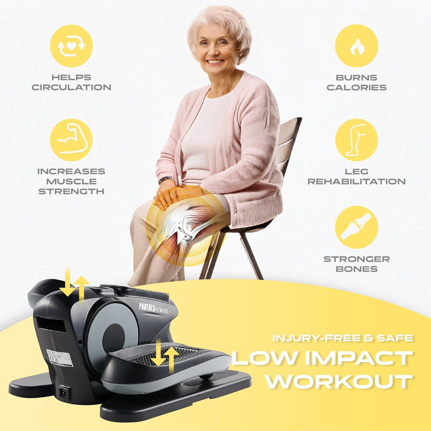 Stay effortlessly active with the Phoenix Fitness Elliptical Machine. Whether you’re working from home, watching TV, or simply relaxing, this compact under-desk elliptical keeps your legs moving, helping to boost circulation, burn calories, and strengthen muscles without putting strain on your joints.