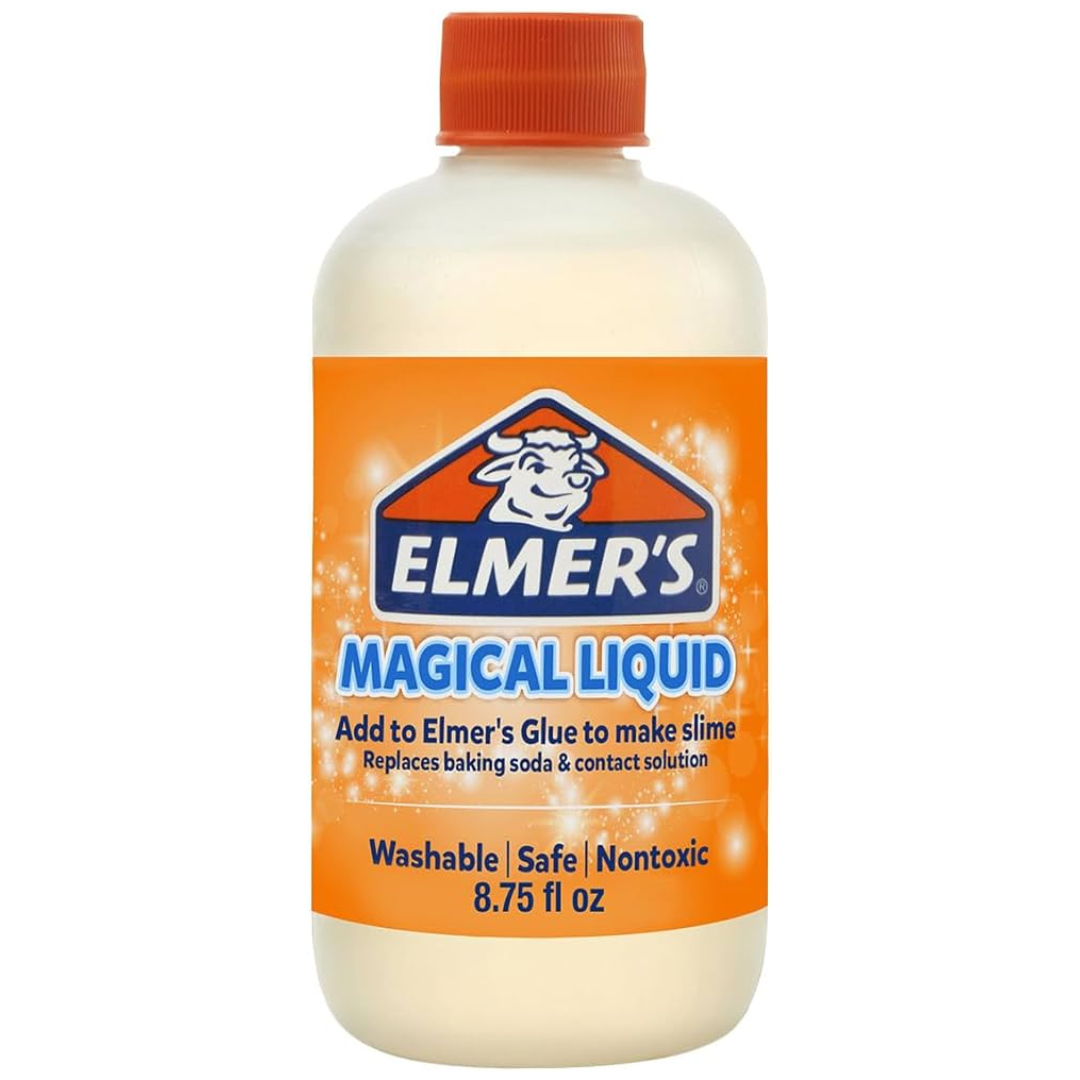 Elmer's Magical Liquid: A versatile, clear solution used as an activator in slime-making, helping to combine glue and other ingredients to create the perfect slime consistency.
