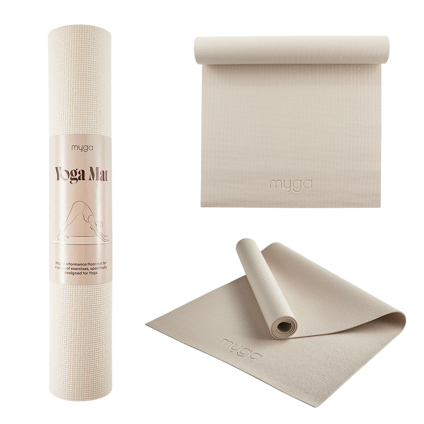 Ease into your yoga practice with the Entry Level Yoga Mat by Myga – Sand. Perfect for beginners, this durable mat offers a cushioned, non-slip surface to support yoga, stretching, or meditation. Its soft sand color adds a calming, natural vibe to your workout space, while the lightweight design makes it easy to carry and store. Ideal for home, studio, or travel use, the Myga Entry Level Yoga Mat delivers comfort, stability, and simplicity for every practice.