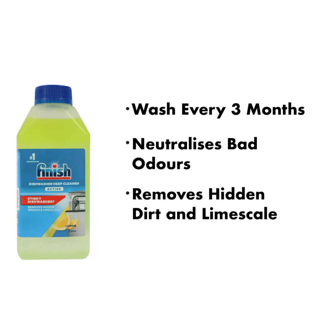 Achieve sparkling clean dishes with Finish Dishwash Cleaner Lemon 250ml. This powerful cleaner is designed to effectively remove grease, food residues, and tough stains, leaving your dishes spotless. Infused with a refreshing lemon scent, it not only cleans but also helps eliminate unwanted odors, leaving your kitchen smelling fresh. Ideal for daily use, it ensures a thorough clean with every wash, helping to maintain the performance of your dishwasher.